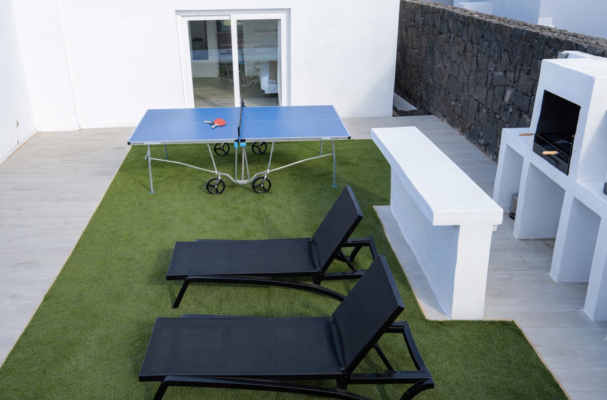 La zona exterior de VillaCactus está diseñada para disfrutar al máximo del aire libre en Playa Blanca. Dispone de zona de barbacoa, mesa de ping pong y espacios abiertos ideales para relajarse o compartir momentos en familia.Ver más